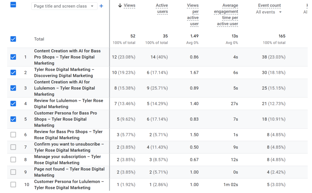 This is also performing well and confirms that AI + brand-specific content is your main draw for new or returning audiences.